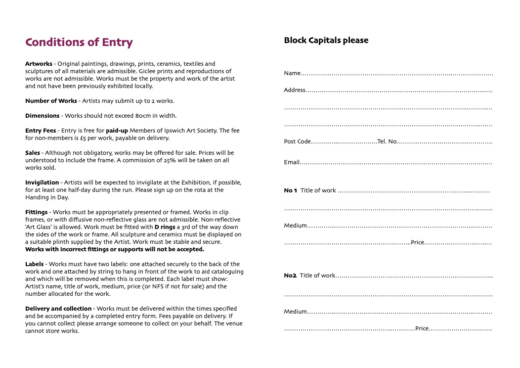 Non members - If you would like to submit work to the Exhibition and cannot access or print the Downloads below please send your name and address to ipsartsoc.publicity@gmail.com and we will send you an Entry Form.