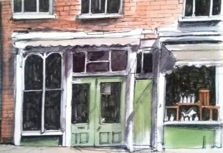 Andrew has been active on the local art scene for many years and has taught art and design in school and college. He established the Young Blood group in the 1980s. He joined the Ipswich Art Society in 1985, later becoming an honorary member. His most recent work is inspired by shop windows, old buildings and in particular old houses decaying in the urban landscape. He uses pen and wash working quickly to catch the spirit of the building or shop window, applying watercolours loosely.
