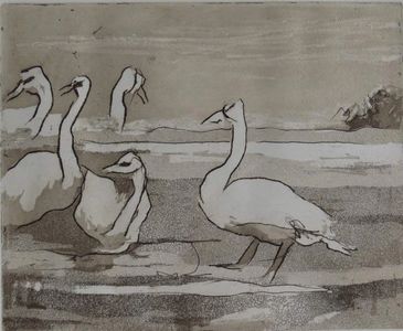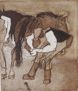 Pris Forrest was born in Malta but settled in Scotland, eventually attending Edinburgh College of Art, where she developed an interest in Printmaking. Moving with a young family to East Anglia, she worked as technician and tutor at the Art School in Suffolk College. She joined exhibiting groups which enabled her to exhibit abroad, locally and in London. She became preoccupied with Suffolk’s flat and watery landscape, also pursuing her interest in horses and music, all of which figure prominently in her work. She has a lifelong love of drawing, which she still teaches privately, and has her own printmaking studio in the Suffolk countryside.