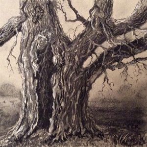 Ancient oak at Rendham Charcoal on paper 20 x 20cms