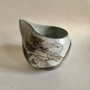 Ursula creates unique, hand-built sculptural vessels, which are first biscuit fired and then Raku fired or smoked. She has travelled extensively in Greece where the evidence of cultural origins and the land, as well as nature and architecture, have greatly shaped her visual language. She relates this experience to the forms and structures that develop through the process of building the pot. Thus birds, trees, skies and land emerge out of slips, pigments and fire. Ursula studied at Goldsmiths’ College School of Art in London where she later was appointed to a lectureship. Her work is held in many collections including the Wilfrid Trust, Auckland, New Zealand, The Gateshead Museum, Shipley and Stadt Dortmund, Germany.
